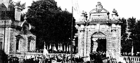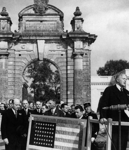 The Sixty-seventh French infantry regiment came to Blérancourt to take part. It was a striking fact that came to mind at the sight of these young lads of military age, marching and going through drill in a spirited way, that none of them were born when our cars were rolling on the French highways. [...] There was more than these young poilus and the display of flags to call the war to mind, for on the day when these ceremonies were held, thoughts of the possibility of that war being repeated were in everybody's mind. Reservists of France had been called out to man the Maginot Line in case the Czechoslovakian crisis should precipitate a call to arms. The newspapers were full of war scare, and many of the prominent persons who had expected to come to Blérancourt had been obliged to remain in Paris because of the tenseness of the international situation.