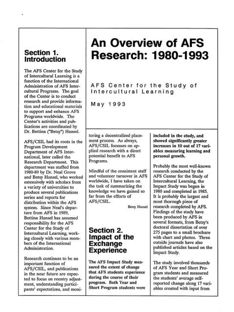 AFS Research Summary – 1980-1993