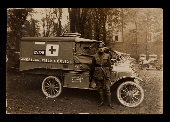 The inscription on this ambulance reads Columbia University, Class of 1881 Daniel J. Leary, donated through Henry E. Montgomery from New York