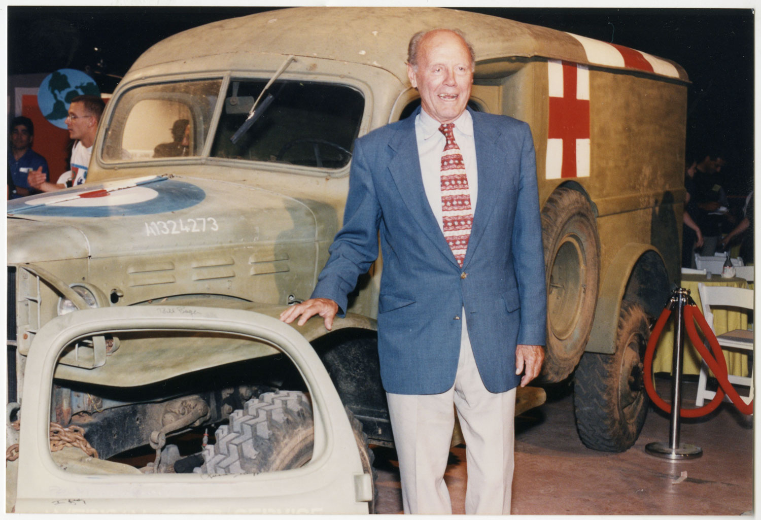 Ward Chamberlin in front of an ambulance during the 50th Anniversary celebration at the Manhattan Center (New York)