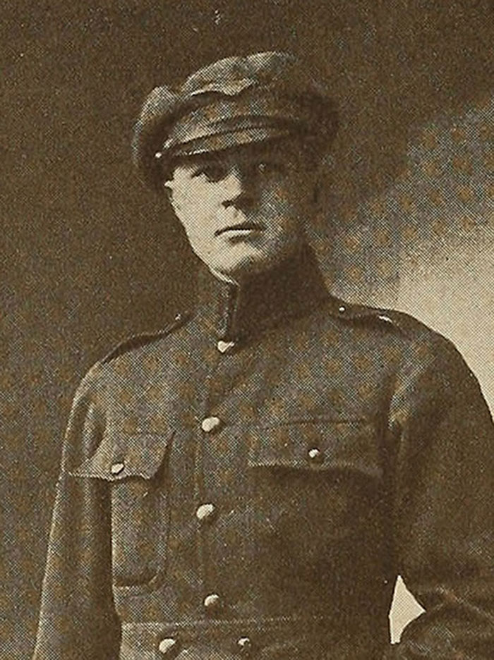 On October 24, 1916, he resigned from the Field Service and returned to America. Desire to be near his fiancée prevented him from carrying out his original intention of returning to France and instead he entered the University of Vermont to complete his education. When war was declared in the following spring he enlisted immediately in the Navy and on the De Kalb, formerly the German raider Prinz Eitel Freidrich, made eleven round trips to France. Shortly before his first voyage he was married, and a year and half later a son was born who bears the father's name.